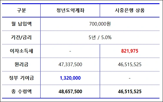 청년도약계좌와 일반 예금 비교